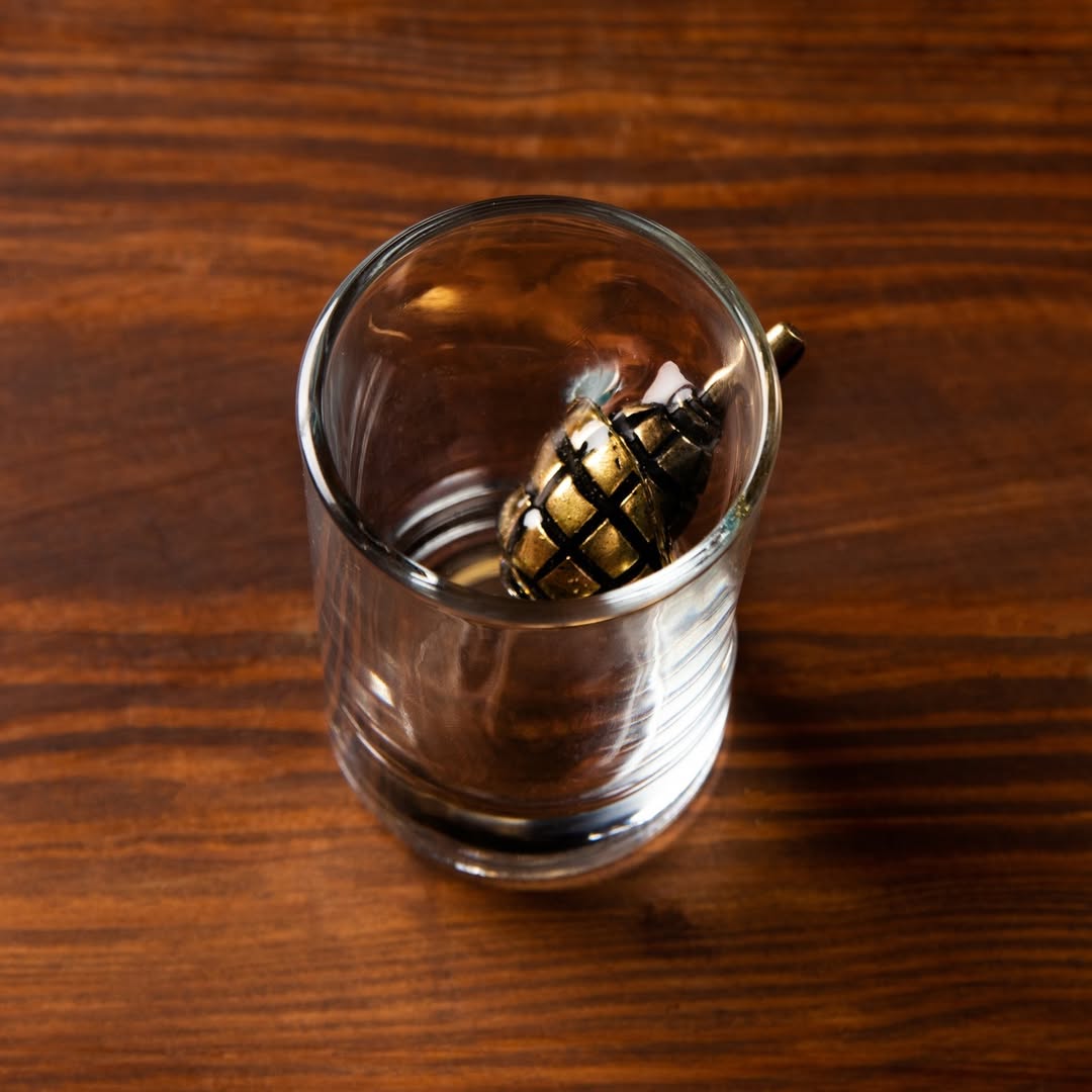 Este set está construido con presencia y precisión. Seis vasos compactos de vidrio grueso con insertos metálicos trabajados a banco y terminación pulida. La caja de madera en negro con logo VSKLO y el soporte exhibidor refuerzan una estética sobria y profesional. Producción mendocina con control pieza por pieza: materiales sólidos, terminaciones prolijas y geometría consistente.